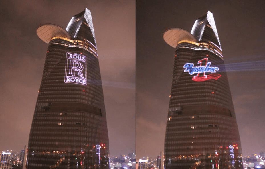 Our light beams’ precision ensures a flawless finish meters away from the projection on surfaces like water or glass. Therefore, we will be able to project any kind of images or shapes on a façade, a floor or even a swimming pool. Also, we can provide you with an animations’ projection service according to your project’s needs. The main advantage of our services in terms of logo and writings projections remains in its personalisation option and the diversity of images to project. Our specialists adapt their creations to follow your guideline, in the idea of ensuring a coherence and a visual fit from the beginning to the end of the show.