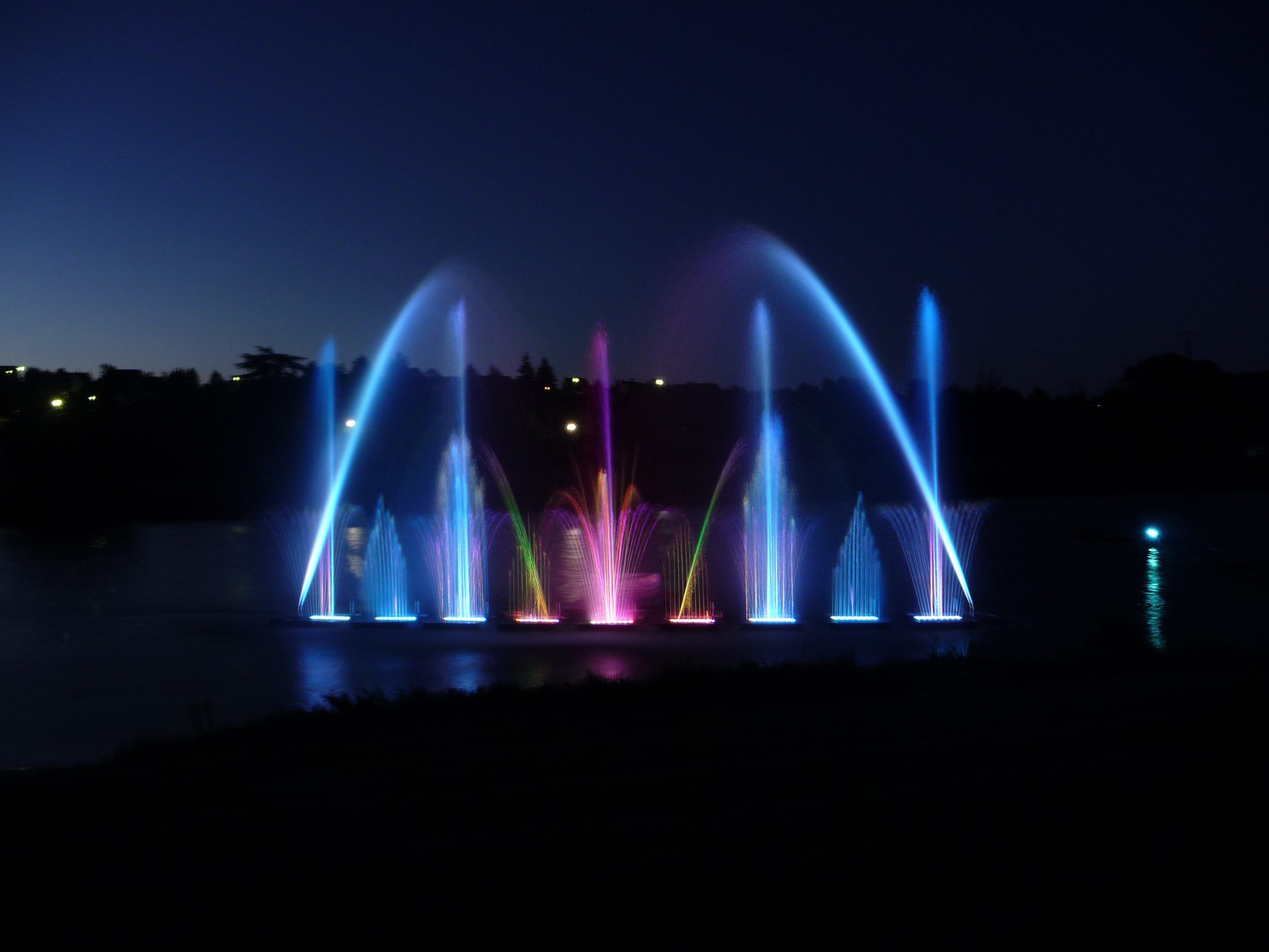 Our facades of dancing and luminous fountains measure from 9 to 100 meters and more for imposing aquatic shows. The "Luminous and dancing fountains" show can be played alone or integrated into an existing show to create a unique aquatic setting.