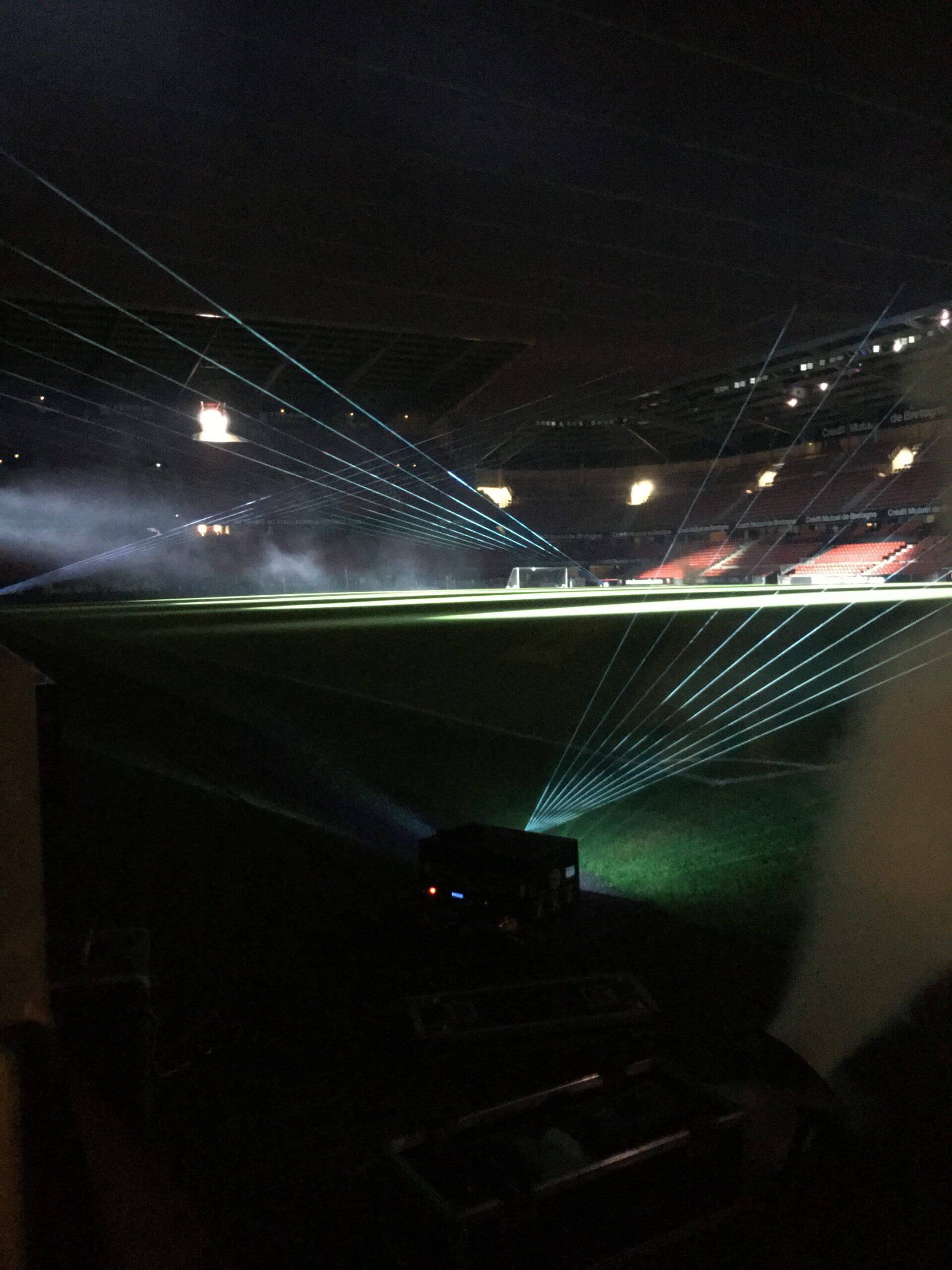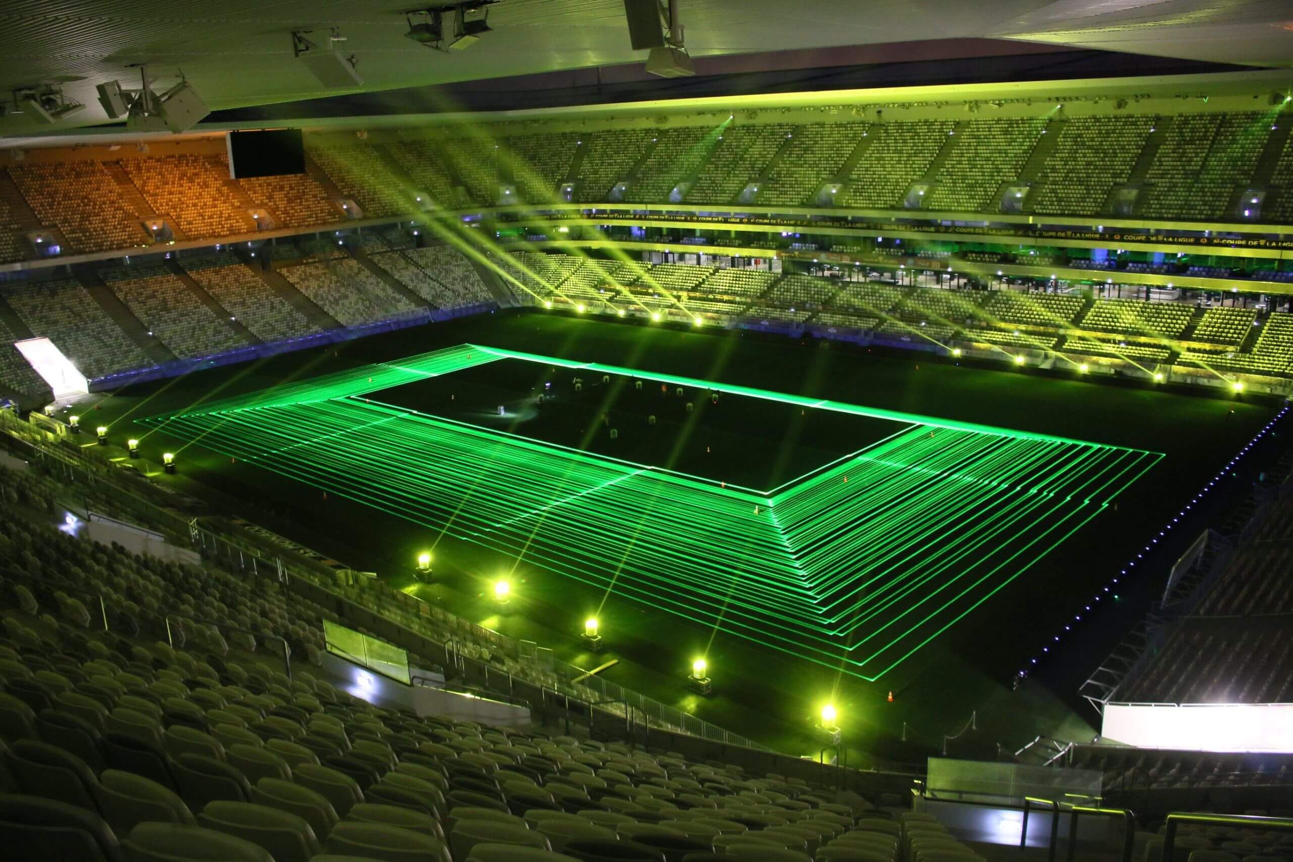 Our technicians use lasers with high-quality diodes in order to create a precised and animated mapping show achieved thanks to fine strokes and marked contours. This high-end material also allows to project texts, writings, logos, drawings, and even videos. All of this has a wide range and a great projection angle allowing spectators to fully appreciate a unique show including visuals and sounds. Our mapping performances are a hundred percent customizable and easily adapt to your project. Therefore, we are able to create shows outside or inside, no matter if it is to complete a sports room or a huge sports field.