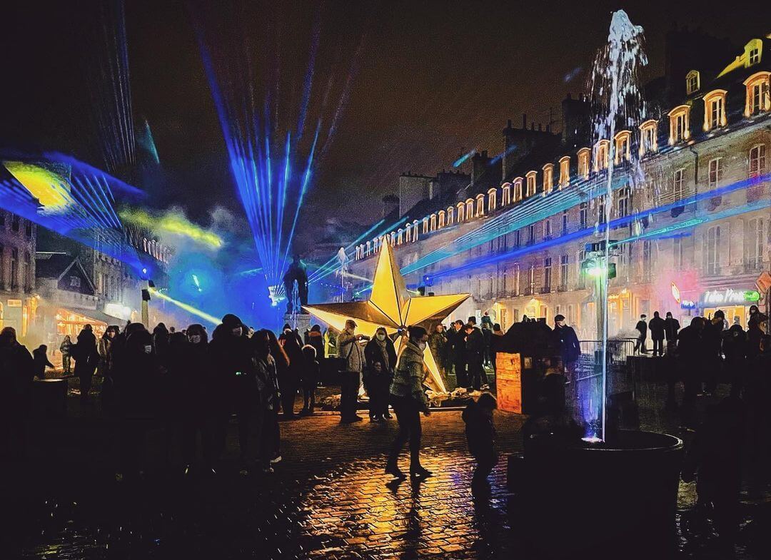Europe Évènement - Projection de lasers sur un arbre aux lucioles composé de boules disco